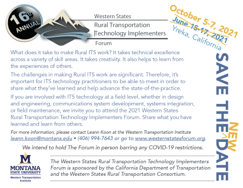 Note the new dates for the 2021 Western States Forum! The Forum Steering Committee evaluated current conditions and made the decision to postpone the Forum to October 5 – 7, 2021. You can review the planned technical agenda in the Forum project update from April 22nd, 2021. Registration information and event details will be posted on the Forum website around June 1st. Check back soon and watch your mailbox and inbox!