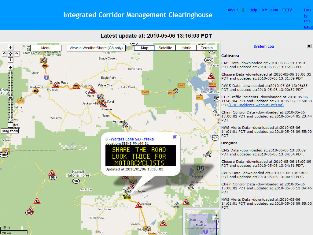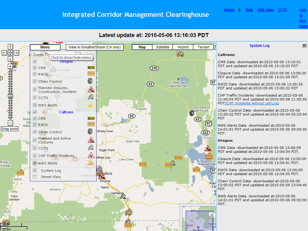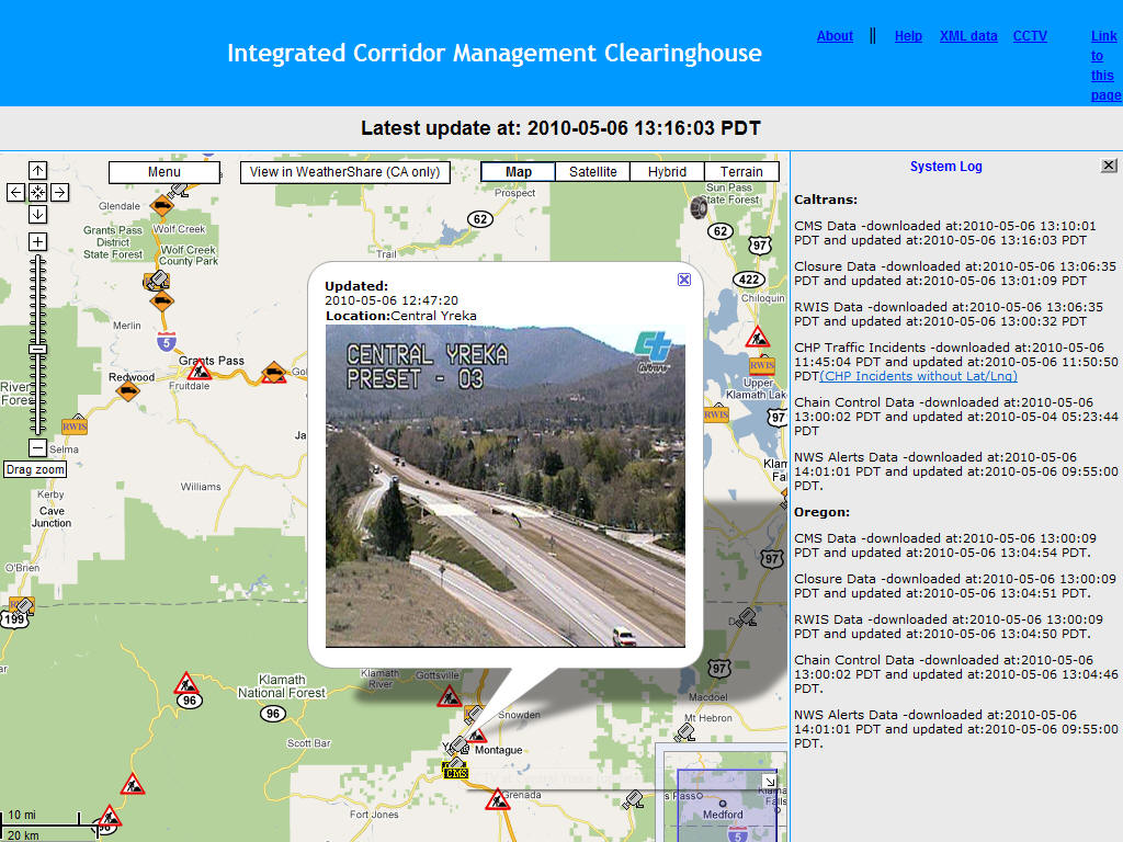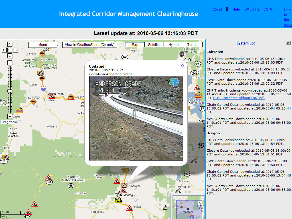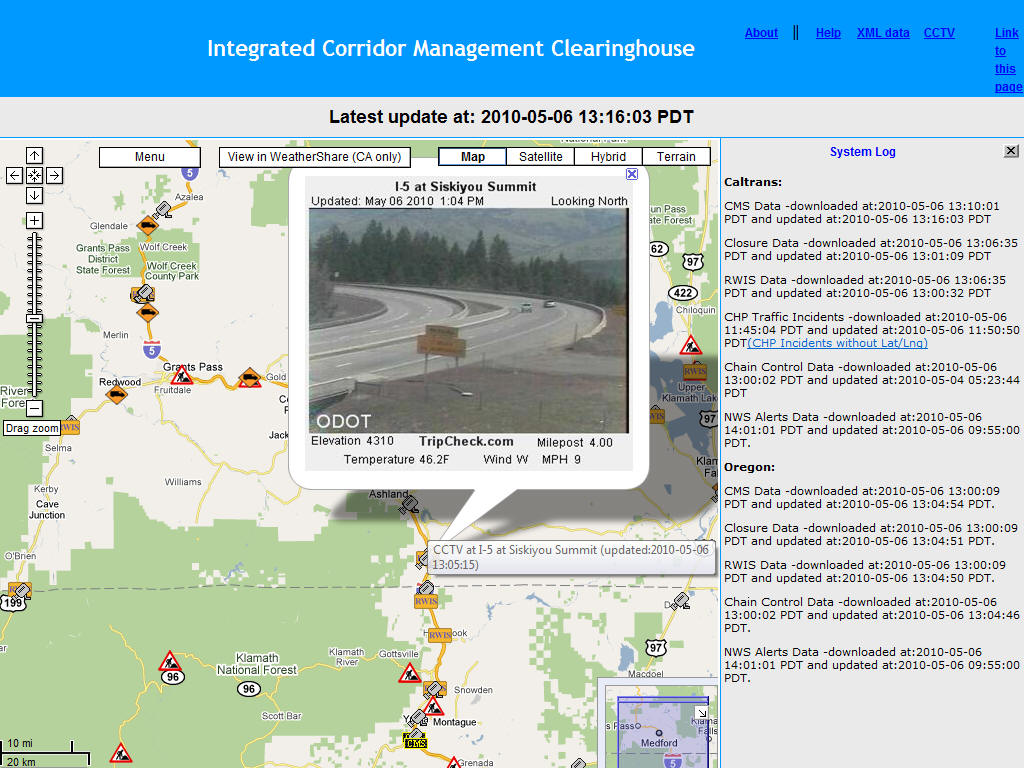 One of our projects that doesn't get a lot of attention is Integrated Corridor Management (ICM). ICM was developed for DOT personnel in California and Oregon so they could better recognize conditions on both sides of the California-Oregon border. ICM is very similar to One Stop Shop, where you'll find most of the same information and more. Let's take a look at ICM.