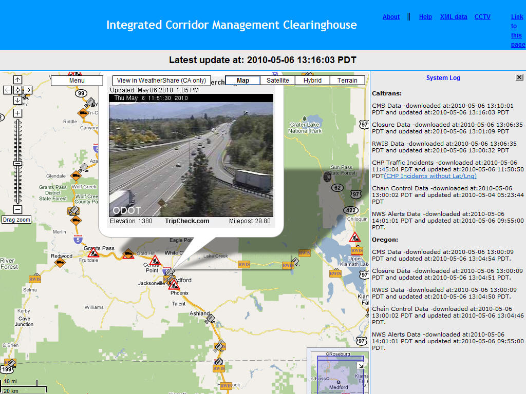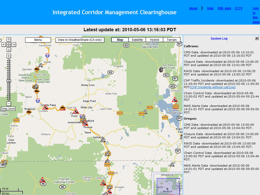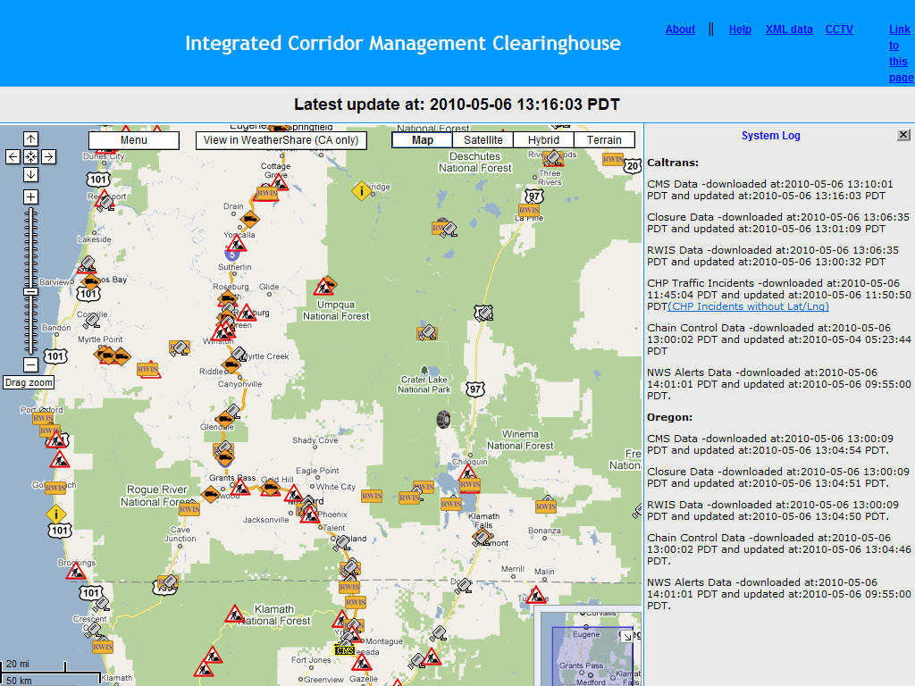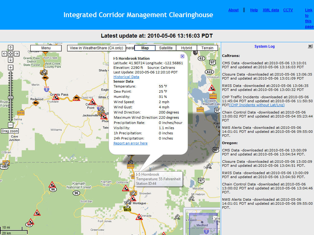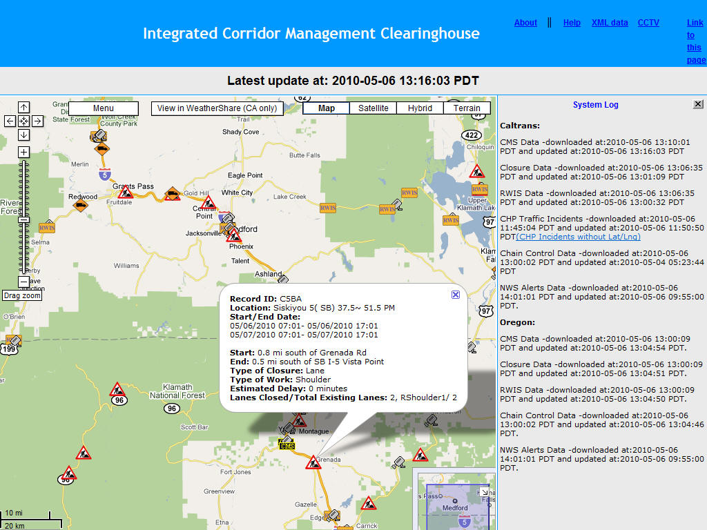 One of our projects that doesn't get a lot of attention is Integrated Corridor Management (ICM). ICM was developed for DOT personnel in California and Oregon so they could better recognize conditions on both sides of the California-Oregon border. ICM is very similar to One Stop Shop, where you'll find most of the same information and more. Let's take a look at ICM.