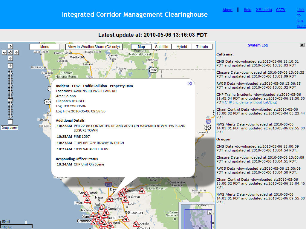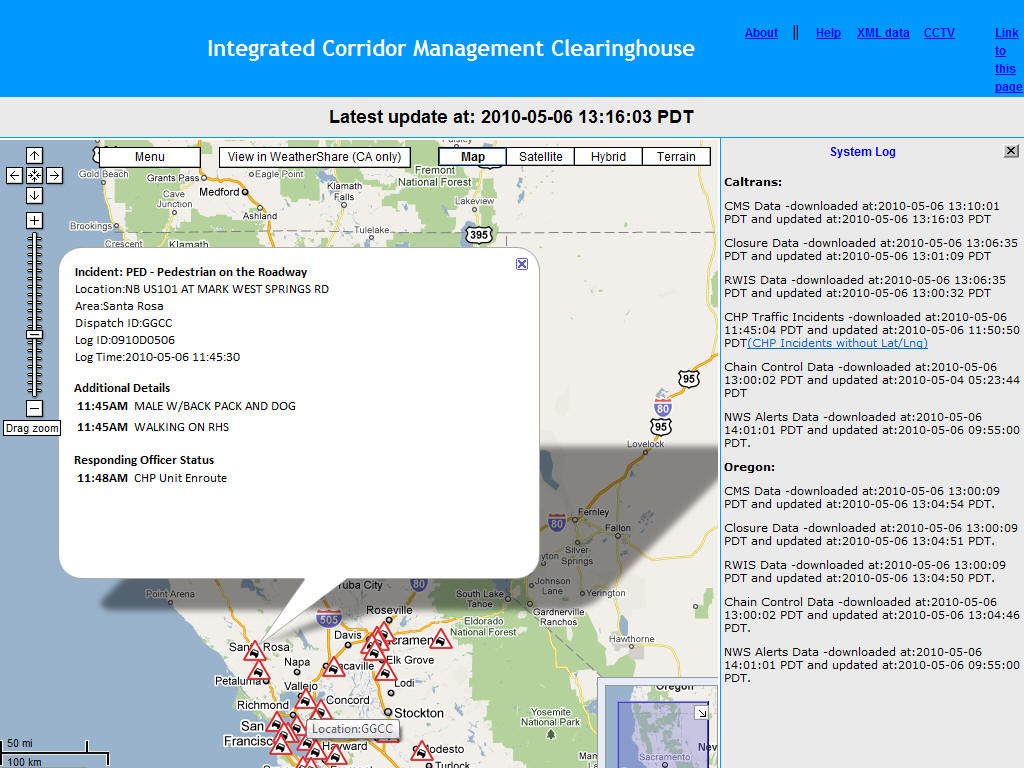 Incident/accident data from CHP is available too. Here we see a number of incidents further south: