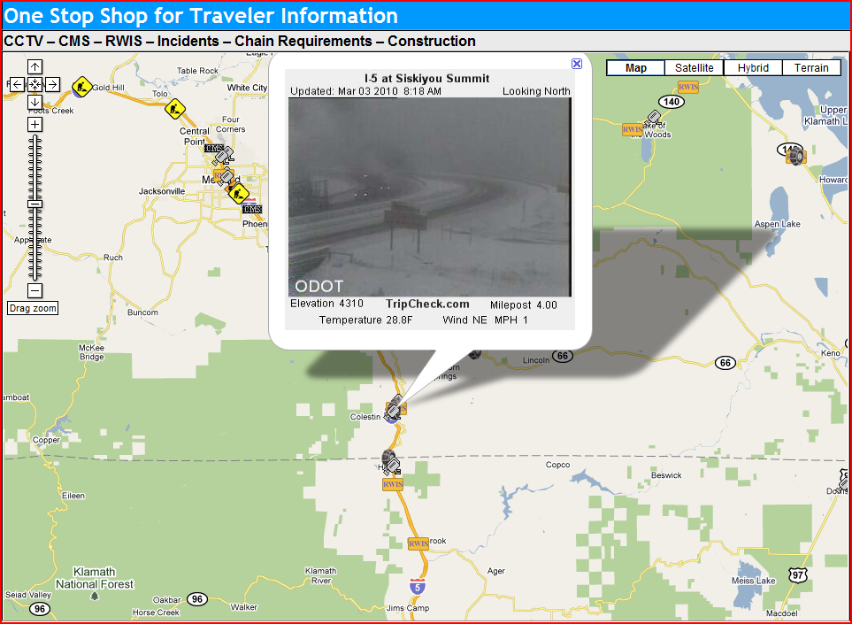 Today has been a good day to use the One-Stop-Shop. The weather in Northern California and Southern Oregon is interesting, to say the least. Spring is on the way, but Winter isn't over yet. Take a look at the following screenshots: